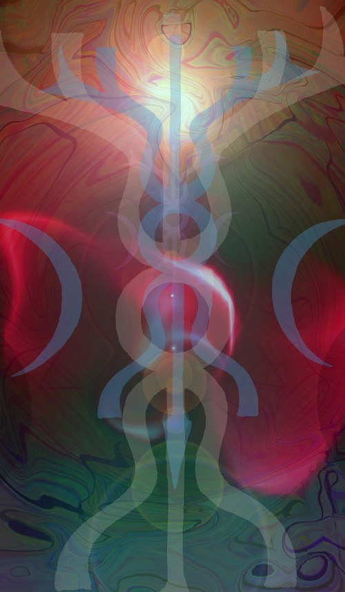 There is a manifestation of Lord Shiva, known as Dakshinamurti. He is represented s a radiant youth, sitting silently on the ground with long, flowing hair. His teaching is given in silence, within which all knowledge and all creation exists. Words are simply a commentary on the nature of this Eternal Silence. Dakshinamurti is the mountain, and he is the tree. The tree is the centre of Silence. All Tree Spirit Healing is a set of creative techniques to attain this central Silence, or Harmonic Balance. All actions, a means to attain stillness. All words, a means to settle into presence. A few years back I created an image attempting to recreate the energy of Dakshinamurti, combining it with the concept of the  Seated Horned God – on of the earliest prototypes of Rudra, (the red one), who later took form as Shiva as the Hindu pantheon evolved. This image -a human crowned with a stag’s antlers – is found in the Celtic lands, and seems like Rudra and Shiva to be associated with Pushapati, Lord of Wild Animals, and therefore with Lord of the Wild Forest, home of the deepest of sentient silences……